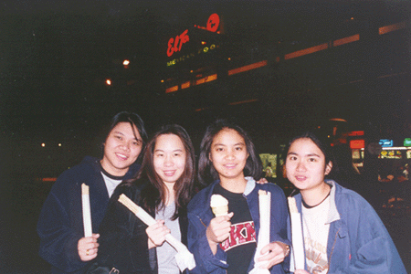 ���� P'Gupta, Aom, Kim and I, we are having Cherros after Sea Food,